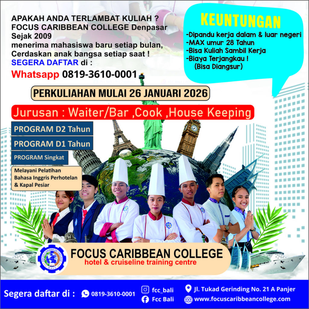 TERSEDIA PROGRAM D2,D1,Kelas Singkat & Melayani Bahasa Inggris Perhotelan dan Kapal Pesiar