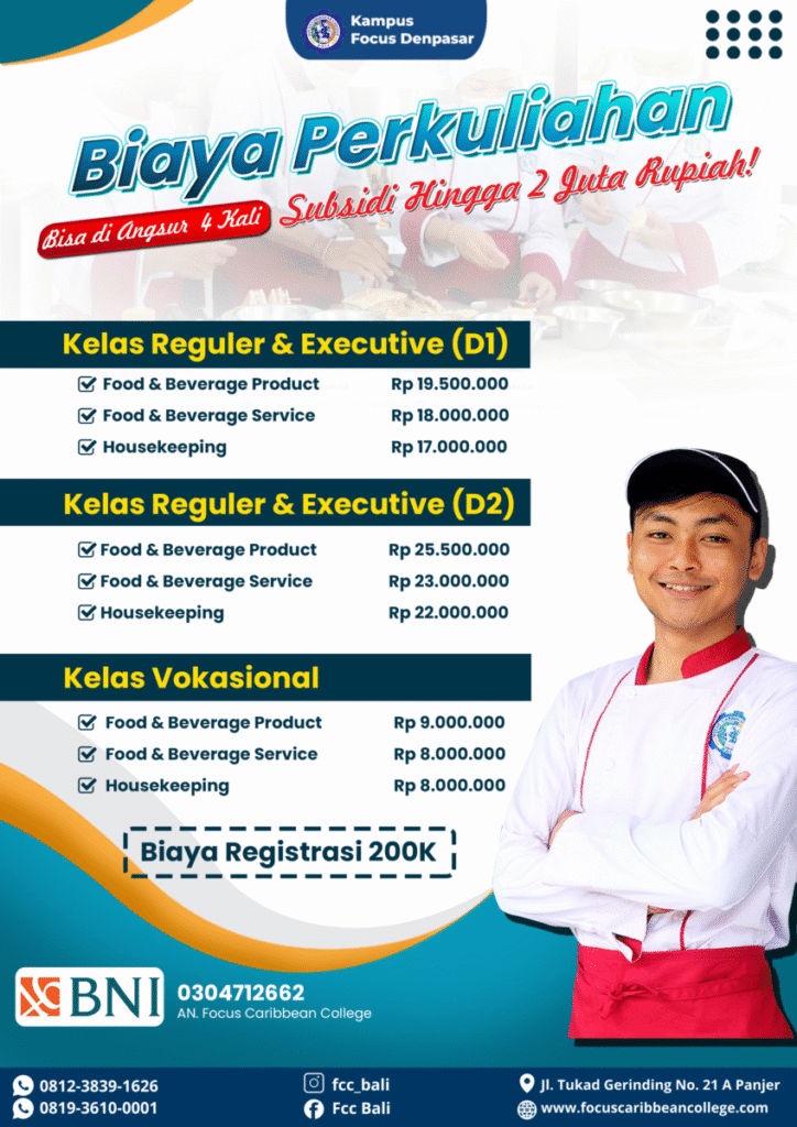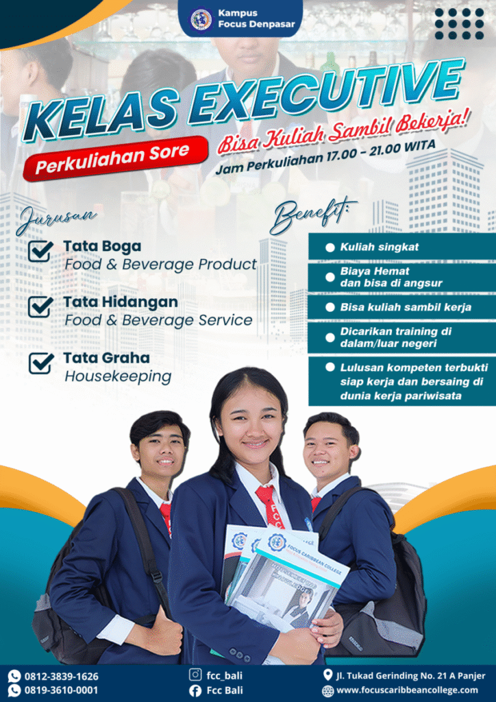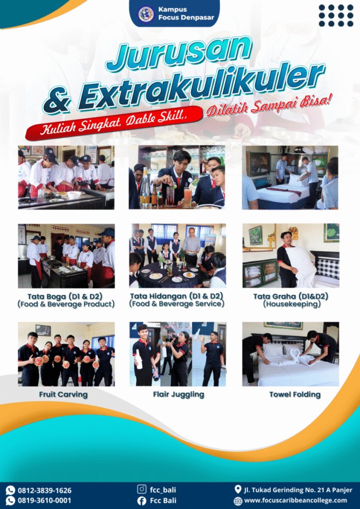 Dengan berkuliah di Focus Caribbean College diharapkan bisa bekerja di hotel berbintang atau kapal pesiar senghingga bisa bekerja sambil berkeliling dunia. Atau bahkan mungkin bisa menjadi pengusaha bertaraf internasional sehingga bisa membuka lapangan pekerjaan di indonesia